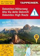 3D-Wanderkarte Dolomiten-Höhenweg 1. Cartina escursionistica 3D Alta Via delle Domiti 1. 1:25.000. Ediz. tedesca, italiana e inglese