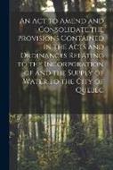 An Act to Amend and Consolidate the Provisions Contained in the Acts and Ordinances Relating to the Incorporation of and the Supply of Water to the City of Quebec [microform]