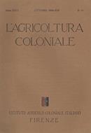 Rivista mensile dell' Istituto Agricolo Coloniale Italiano, Anno XXIX Ottobre 1935 - XIV, N. 10. Fascicolo spillato, copertina semi rigida, con usure lievi della luce, tracce d'uso e mancanze al dorso, in buono stato di conservazione, interno ed esterno. Con scarna, documentazione storico fotografica in nero nel testo.