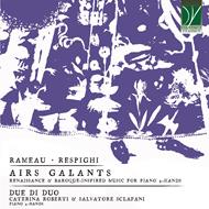 This recording invites to the discovery of Renaissance and Baroque works, transcribed for piano four-hands in different historical periods and according to different aesthetics. On the one hand, the transcription by Léon Roques (1839-1923) of Airs de Ballet from Les Indes Galantes, an opéra-ballet by Jean-Philippe Rameau (1683-1764); on the other hand, the Antiche Danze ed Arie per Liuto (first and second suites) by Ottorino Respighi (1879-1936), freely transcribed from 16th-and 17th-century original pieces for lute. According to the catalogue of Respighi's works, only the first two suites out of the three existing ones were arranged for piano four-hands by the composer himself from their orchestral version and published respectively in 1919 and 1923. The performers’ predilection for the Renaissance and Baroque repertoire, as well as the performance challenges produced by such 'ancient' compositions in their 'modern' transcriptions, intrigued and prompted them to engage in an in-depth interpretive research, especially with regard to the specificity of musical writing of the past in relation to current instrumental practices.Questa registrazione invita alla scoperta di opere rinascimentali e barocche, trascritte per pianoforte a quattro mani in diversi periodi storici e secondo diverse estetiche. Da un lato, la trascrizione di Léon Roques (1839-1923) di Airs de Ballet da Les Indes Galantes, un opéra-ballet di Jean-Philippe Rameau (1683-1764); dall'altro, le Antiche Danze ed Arie per Liuto (prima e seconda suite) di Ottorino Respighi (1879-1936), liberamente trascritte da brani originali per liuto del XVI e XVII secolo. Secondo il catalogo delle opere di Respighi, solo le prime due suite delle tre esistenti furono arrangiate per pianoforte a quattro mani dallo stesso compositore dalla loro versione orchestrale e pubblicate rispettivamente nel 1919 e nel 1923. La predilezione degli esecutori per il repertorio rinascimentale e barocco, così come le sfide esecutive prodotte da composizioni così "antiche" nelle loro trascrizioni "moderne", li ha incuriositi e spinti a impegnarsi in una ricerca interpretativa approfondita, soprattutto per quanto riguarda la specificità della scrittura musicale del passato in relazione alle pratiche strumentali attuali.