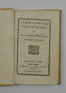 Cm. 18,5, pp. viii, 248. Solida legatura coeva in piena pergamena rigida con titoli in oro su doppio tassello al dorso. Esemplare genuino e ben conservato. Edizione originale ed unica di quest'opera in cui l'autore confessa nell'introduzione essere tratta dalle lezioni del professor Giuseppe Zocchi. Assolutamente non comune, nessuna copia in Iccu.