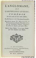Titolo: L'ANGLOMANE ou L'ORPHELINE LEGUEE, Comédie en un acte et en vers libres. - Saurin Bernard-Joseph. - Chez Louis Chambeau, - 1773