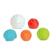 Un coloratissimo set composto da 5 palline sensoriali con le forme di diversi animali, arricchite da texture e di dimensioni differenti. Perfette per un’esplorazione multisensoriale a prova di neonato! Il bambino è libero di scoprire il gioco autonomamente, senza nessun pericolo: le morbide palline stimolano la vista, il tatto, la presa e le capacità manuali. Un modo originale per scoprire divertendosi in totale sicurezza. Le palline sono delle compagne ideali per i piccoli esploratori che utilizzano mani, piedi e bocca per conoscere il mondo! Un materiale soft touch deformabile e texture particolari per stimolare tutti i sensi; diverse dimensioni e un design unico per ogni pallina per aumentare l’attenzione e la capacità di osservazione. Il design privo di fori le rende 100% lavabili ed igienizzabili, permettendo di usarle anche per il bagnetto senza il rischio che si creino muffe all'interno. Un materiale morbido, atossico e completamente lavabile, testato per essere messo in bocca, lanciato o calpestato senza alcun rischio!