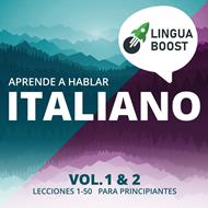 "Aprende a hablar italiano. Vol. 1 & 2." es un curso de audio para principiantes o para cualquier persona que tenga dificultades para hablar italiano con fluidez. El objetivo de este curso es practicar el italiano conversacional desde la primera lección. El curso se divide en 50 lecciones. Cada lección contiene frases cotidianas útiles relacionadas con un tema específico. Basado en técnicas y estrategias que hacen que los estudiantes de idiomas tengan éxito: Aprende en cortas sesiones todos los días. Cada lección tarda unos 10-15 minutos en completarse. Aprende en contexto. Las palabras aisladas o las oraciones aleatorias no te llevarán lejos. Al aprender frases relacionadas con un tema o situación específica, verás resultados mucho mejores. Enfócate en palabras de alta frecuencia. Comenzar con las palabras más utilizadas aumentará tu comprensión y comunicación en tu idioma de estudio. Repasa el material. Repetir las frases a ciertos intervalos específicos es una técnica poderosa para ayudar a tu memoria a absorber y recordar lo que has aprendido. Escucha a hablantes nativos. Todas las frases son traducidas y habladas por hablantes nativos.