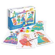 Fantastico! Con poche gocce di vernice qualsiasi bambino potrà creare dei veri capolavori raffiguranti delle principesse con stupendi abiti floreali! Aquarellum Junior si basa su una tecnica di mascheramento su carta velina, consentendo alla vernice di aderire solo alle zone scelte. Il disegno si rivela gradualmente con ogni colpo di pennello e può essere ridipinta ripetutamente per ottenere limmagine perfetta. Questa attività è lideale per avviare i bambini allarte della pittura, per comprendere come si mescolano i colori e per stimolare la loro immaginazione e concentrazione.