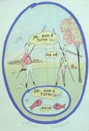 <p>Testo dell'Artista. Con una serigrafia originale a colori (cm 24x34), tirata a mano, numerata 695/1190 e firmata a lapis</p> 4to. pp. 8. . Ottimo (Fine). . Edizione numerata (Numbered edition). .