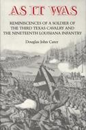 Cater's reminiscences of his Civil War experiences, simply titled ""As It Was"", comprises a superbly detailed and colorful description of a soldier's life in the ranks of the Third Texas Cavalry and the Nineteenth Louisiana Infantry.In the early chapters of ""As It Was"", Cater describes his youthful experiences, including his family life, education, hunting, and other pleasant pastimes, plantation activities and relationships with slaves, as well as social conditions. These chapters are valuable for their honest views of life in the late antebellum northwestern Louisiana and northeastern Texas.In early May 1861 a wealthy Rusk County planter, Richard H. Cumby, began recruiting a company of volunteers to serve as cavalrymen. More than one hundred men, including Douglas John Cater, answered the call.Representing the cream of Rusk County's young male population, they would be designated as Company B of Col. Elkanah Greer's Third Texas Cavalry, formed the following month in Dallas. Cater served with the Third Texas Cavalry in the Battle of Wilson's Creek and Elkhorn Tavern.In June 1862, Cater transferred to the Nineteenth Louisiana Infantry to be with his brother Rufus, and remained with that unit until the end of the war. He participated in the Battles of Chickamauga, Missionary Ridge, Franklin, and Nashville.