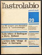 Opuscolo vintage. L'astrolabio, Roma, N. 20 - 28-10-1977. Argomento: Saggi. Autore: AA. VV.. Editore: Stampa Nova A.G.E.P.. Luogo: Roma. Anno: 1977. Formato: in-4°. Pagg: 40. Legatura: Punto metallico. Conservazione: buona. Illustrazioni in bn all'interno del testo. Foxing al taglio.
