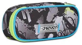 Astuccio ovale con zip Round Plus Seven Feeling Me, nero fantasia