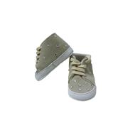 Baby Chick produce artigianalmente da ormai 30 anni scarpette per neonati in vera pelle e tessuti. L'azienda nasce e si sviluppa come laboratorio artigiano, caratteristica ancora immutata , dove la lavorazione continua ad essere rigorosamente manuale, in proprio di tutto il prodotto e con esclusivamente manodopera italiana. Questo rende ogni singola scarpetta un oggetto unico. Le scarpette sono beige scamosciate con strass e chiusura con stringhe. Collezione: autunno / inverno Numero: 15
