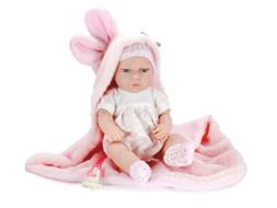 Bambola-Eva Collection,bambola con vestitino bianco e copertina rosa con orecchie-Hungary Toy-Eta 3+