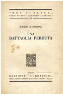 In-8°, pp. 384, (2), brossura editoriale protetta da velina. Ottimo stato. Prima edizione, tirata a 2000 esemplari numerati (n° 422) su carta vergata della Cartiera di Maslianico. Scritti di pubblicistica politica di orientamento liberale e antifascista. "Cercò di giustificare il «collaborazionismo» a cui guardava Nitti operando una distinzione, destinata a grande fortuna, fra «partito liberale» e «funzione liberale»: in Italia, essa «da almeno quindici anni, è passata […] ai socialisti. Il capo del liberalismo italiano, da quindici anni, è Filippo Turati». Tale «funzione» poteva tornare nelle mani del partito liberale, solo se esso si fosse mostrato capace di far propri e risolvere i programmi politici altrui e di usare anche le forze apparentemente ostili per un’opera di rinnovamento: così doveva esercitare una certa tolleranza nei confronti della violenza proletaria e ricercare una collaborazione con il socialismo «riformista» (Polemica liberale, Bologna 1919, e Una battaglia perduta, Milano 1924)." (Roberto Pertici in D.B.I., 75, 2011). "Res Publica", III.