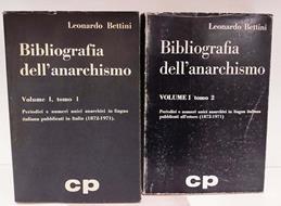 2 volumi ; 25 cm, Vol. 1, tomo 1: Periodici e numeri unici anarchici in lingua italiana pubblicati in Italia (1872-1971), XV, 429 pagine. Vol. 1, tomo 2: Periodici e numeri unici anarchici in lingua italiana pubblicati all'estero (1872-1971), XIX, 351 pagine e 1 carta geografica. Brossura con sovracop. come da foto, lievi segni del tempo alla sovracop., carta naturalmente ingiallita