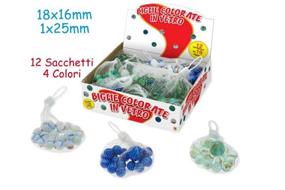 Biglie colorate in vetro.18 biglie da 16mm + 1 biglia da 25mm.Età 5+