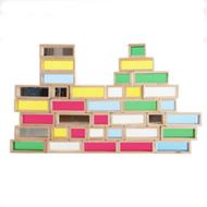 Blocchi giganti in legno ben levigato con facce in materiale acrilico traslucido colorato. Ideali per promuovere la manipolazione e la coordinazione oculo-manuale, conoscere le diverse forme. Il bambino potrà osservarli percependo divertenti ed affascionanti giochi di luce soprattutto se utilizzati su piani e tavoli luminosi.Obiettivi didattici:- sviluppare capacità di manipolazione e progettazione- comprensione del mondo: osservazione- matematica: forma e spazioDimensioni: mattone grande cm 20x7,5x7,5 - mattone piccolo cm 10x7,5x7,5Contenuto: 36 pezzi (24 grandi, 12 piccoli) in 4 colori, trasparente e a specchio