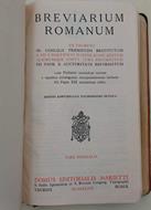 In 16', pelle ed. con fregi e tit. in oro al piatto e al dorso, pp. 266, 32+10 indici, taglio sup. in oro; segni d'uso alla cop., annotazioni alla prima bianca, piccoli dattiloscritti aggiuntivi intercalati tra le pagine (foto). "...s.PII V Pontificis Maximi jussu editum aliorumque pontt. cura recognitum pii Papae X autocritate reformatum cum Psalterio secundum novam e textibus primigeniis interpretationem latinam Pii Papae XII autocritate edito. Editio Amplificata taurinensis octava-pars hiemalis"