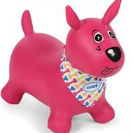 Cagnolino gonfiabile e cavalcabile per dei divertenti rimbalzi. Dotato anche di una bandana da decorare e dover poter scrivere il nome del nuovo amichetto. Colore rosa. '