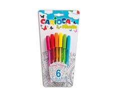 Carioca Fiorella. Colore del prodotto: Multicolore, Colore penna: Multi, Tipo: Penna a sfera. Quantità per pacco: 6 pezzo(i), Tipo di imballo: Blister. Larghezza scatola principale: 39 cm, Lunghezza del cartone principale: 53 cm, Altezza scatola principale: 28 cm Fiorella\nPenna a sfera con corpo colorato trasparente fluo; punta da Ø 1 mm, inchiostro fluo per una scrittura brillante e colorata.