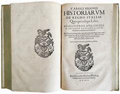 Caroli Sigonii Historiarum de Regno Italiae libri viginti. Ad illustriss. atq. excell. D. Iacobum Boncompagnum, [...] Qui libri historiam ab anno DLXX usque ad MCCLXXXVI, quo regnum interiit, & libertas Italiae redempta est, continent. Accessit praet