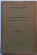 Carta annuale delle piogge nella regione veneta per il 1913. Pubblicazione N. 61. R. Magistrato delle Acque Ufficio idrografico. A fine testo una grande carta geografica ripiegata su se stessa. Brossura editoriale brunita e con piccoli tagli al dorso dove insiste un'etichetta adesiva, interno brunito ma buono. In prima pagina timbro di proprietà, volume dismesso.
