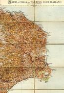 Carta geografica telata a 10 quadri, 1:250.000 lievemente ingiallita dal tempo e con rara fioritura