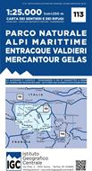 Carta n. 113 Parco naturale Alpi Marittime, Entracque, Valdieri, Mercantour, Gelas 1:25.000. Carta dei sentieri e dei rifugi