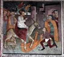 DAL LIBRO: Era per appunto vicino il giorno della festa di quel Santo, e loro, senza perder tempo, ci spedirono espressamente uno che andasse e riportasse una schiezzina di quel legno benedetto. Lui va via, e cammina, cammina, cammina, arriva a quella festa in su quel monte. C'era tanta ma tanta gente, com'usa per le solennità su per i monti, e tutti erano allegri matti: chi cantava, chi sonava, chi ballava; e poi c'erano delle baracche dove si sgranavano di bravi polli e si trincava di bravo vino. Ora quest'uomo, o che si perdesse a stare a vedere, che si mettesse anche lui in combriccola a ballare e far baldoria, o che o come, fatto si è che si scordò del legno da dover prendere, dell'indemoniata e tutto. La sera chiusero la custodia del Santo, e il giorno dopo anco la chiesa; ed ecco fatto che dovette ritornarsene indietro senza niente. Se ne veniva giù giù, gamba gamba, e sempre mulinava col suo pensiero come potersi scusare. Intanto arriva a un'acqua che bisognava traversare in barca. Monta su e comincia a passare. A vedere quel legno mezzo tarlato di quella barca, gli cascò in mente: «E se pigliassi un pezzetto di questo legno qui?» E come se non fossero fatti suoi, ne taglia una bella fetta, come fusse polenta, se la mette in catana, e via. A casa tutti l'aspettavano in gloria, e più che tutti quella povera donna, perchè eran sicuri che, venuto il legno, lei era bella e guarita. Finalmente lo scorgono da lontano: «Eccolo! eccolo! Dov'è il legno? Dov'è il legno?» — «A voialtri, eccolo qui!» Lo pigliano, e via di correndo, lo portano a quella donna che aspettava in ginocchioni, e tosto che ebbe veduto quel pezzo di legno fu subito liberata, e si senti una vociacela che disse: La buona fé mi caccia, Ma il legno è di barcaccia. E ora si seguita a dire così, specialmente quando facciamo una cosa più per la bontà di chi ce la chiede, che per il merito della cosa in se stessa.