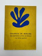 In 8, cm. 18 x 25, pp. 46 non numerate, con 31 tavole a piena e dopppia pagina in bianco e nero. Brossura editoriale in cartoncino morbido illustrato con le ghirlande blu di Matisse. In ottime condizioni. Negli ultimi anni di vita Matisse, che a causa delle condizioni di salute sempre piu' precarie era spesso ospite delle suore domenicane del monastero di Vence, accetto' di progettare e realizzare per loro la Chapelle di Saint Marie du Rosaire. Nelle intenzionni il progetto planimetrico per l'edificio doveva essere realizzato insieme al frate domenicano Louis-Bertrand Rayssiguier ma ben presto emersero idee divergenti ed il frate propose l'intervento di Le Corbusier che Matisse rifiuto' preferendo quello di August Perret. Il volume raccoglie diesegni e progetti realizzati per l'appunto da Matisse e Rayssiguier con la supervisione di Perret.
