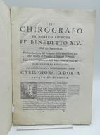 Chirografo di Nostro Signore PP. Benedetto XIV delli 27 luglio 1749. Per l'estensione del progetto della immissione dell'Idice nel Po di Primaro al Palazzo Colombi..