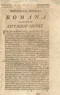 Roma, presso i Lazzarini, Anno VII Repub. [1798], in-folio piccolo, nato senza brossura, pp. [16], l'ultima carta bianca. Contiene l'arringa del Sebastiani in favore del Cittadino Gallinari nella causa da lui intentata contro il Cittadino Falconieri, Generale delle Poste della Repubblica Romana, per lo smarrimento d'un pacco sigillato assicurato, del valore di "trecento pezziduri". L'arringa è seguita dal Sommario d'una sentenza precedente (sulla questione), favorevole al Gallinari. Lievi difetti e piccola gora marginale.