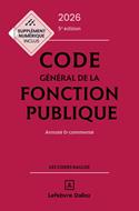 Le seul code complet sur la matière. Les + de l'édition 2026: - partie législative du code général de la fonction publique composée de 8 livres, entrée en vigueur le 1er mars 2022; - trois premiers livres de la partie règlementaire (droits, obligations et protections; droit syndical et dialogue social; recrutement) entrés en vigueur les 1er février et 1er octobre 2025; - textes complémentaires; - appendice comprenant les textes relatifs aux pensions de retraites des agents publics (code des pensions civiles et militaires de retraite, ...); - table de concordance entre les anciennes et nouvelles dispositions issues de la codification; - table de jurisprudence des décisions citées; - supplément inclus en ligne. L'ensemble des textes est éclairé par des commentaires approfondis et des annotations jurisprudentielles et bibliographiques. Le Code général de la fonction publique Dalloz 2026 réunit les meilleurs outils pour offrir aux agents publics, aux administrations, aux organisations syndicales, aux avocats et aux étudiants les moyens d'appréhender cette matière. Il est à jour, notamment, des décrets du 15 juillet 2025 sur l'âge d'ouverture du droit à la retraite progressive à soixante ans, du décret du 24 juillet 2025 modifiant les livres Ier et II et relatif aux dispositions réglementaires du livre III.