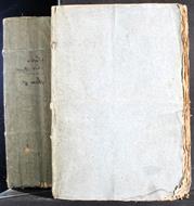 Buone, tagli molto frastagliati, lievi macchie su prima e quarta di copertina, scritta con calamaio, piccoli strappi e gora d'acqua sul dorso, piccole gore d'acqua su prima di copertina, lievi fioriture sul frontespizio, rilegatura amatoriale