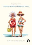 Gli over 70 della Valle Varaita sono in attesa del giorno d'inizio della colonia marina che si terrà a Borgata Tacca di Melle. Gigliola Vermuller, dotata di fiuto investigativo e di una fervida immaginazione, crede che l'iniziativa sia alquanto sospetta. Una truffa? Un esperimento di massa su ingenui vecchietti ansiosi di salute e gioventù? E, soprattutto, ci scapperà il morto? "Colonia marina a Borgata Tacca" è il secondo romanzo che vede protagonista l'anziana signorina Gigliola Vermuller, procacciatrice di "cadaveri squisiti" per i romanzetti gialli dell'amica Virginia. Della stessa serie: "Le luci accese di Chiaronto".