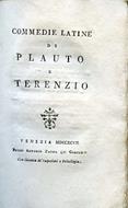 In-8° antico, pp. 312, brossura originale decorata con titolo a stampa su tassello cartaceo al dorso. Precede un'avvertenza del curatore della collana, Andrea Rubbi. Fresco esemplare in barbe. Cernita di commedie plautine e terenziane volgarizzate da autori vari. Parnaso de'Poeti Classici di ogni nazione, tomo vigesimoprimo.