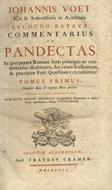 Commentarius ad Pandectas. In quo praeter Romani Juris principiae ac controversias illustriores, Jus etiam hodiernum & praecipuae Fori Quaestiones excutiuntur