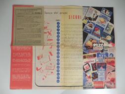 Bifoglio (4 facciate ciascuna misura cm 21 x 34) con piega nel mezzo dovuta a ripiegatura del foglio, strappetto interno. Catalogo del concorso a premi dei prodotti dei brevetti del Dott. Franco.