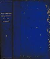 Copertina plastificata in millerighe sporca lievemente con titolo in oro al dorso, segni di usura e graffi ai piatti. Tagli sporchi di polvere lievemente e ingialliti. Pagine ingiallite. Buono (Good) .