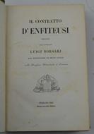 Pp. (4) 840. Unito a: BORSARI LUIGI. Collezione di leggi e ordinamenti per servire all'opera il contratto d'enfiteusi. Stessi dati tip. ma 1854. Pp. 51 (1). Due opere in un volume di cm. 26. Solida legatura coeva in piena percallina, dorso liscio con titoli e in oro e fregi a secco ai piatti. Esemplare genuino ed in buono stato di conservazione. Entrambe le opere in edizione originale.