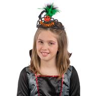 Coroncina Halloween In Plastica Nera con Dec.Arancioni Rifrangenti E Piume Su Cartoncino