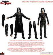 5 Points The Crow Deluxe Figure SetBelieve In AngelsA year after he and his fiancée are murdered, Eric Draven sets out to wreak revenge upon his killers after being brought back to life by a crow.This Deluxe set contains two different variations of The Crow:Version 1 - The Crow wears his signature overcoat and comes with a set of interchangeable arms allowing him to recreate his iconic pose from the film, as well as an additional right pointing arm. An interchangeable smirking head portrait is included and fits on both versions of The Crow.Version 2 - The Crow wears a distressed black shirt and comes with a set of interchangeable legs, allowing him to recreate the walking pose as seen on the film's poster. An interchangeable vengeful stare head portrait is included and fits on both versions of The Crow. 5 Points The Crow Deluxe Set is packaged collector-friendly and designed with collectors in mind.