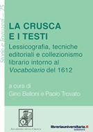 In co-edizione con l'Accademia della Crusca. Nel 1612 uscì a Venezia la prima e monumentale edizione del Vocabolario degli Accademici della Crusca: un migliaio di pagine che divennero il modello per i vocabolari storici delle altre lingue moderne. Nel registrare le diverse accezioni dei vocaboli del fiorentino trecentesco, i compilatori non si limitarono a servirsi dei grandi classici e del Villani, ma sulla scia di Borghini e Salviati spogliarono le opere di molti autori fiorentini minori, spesso anonimi, usando edizioni a stampa ma anche raccolte di manoscritti antichi di recente costituzione, allestite a scopo di studio. Con una scelta che prefigura il criterio primonovecentesco della cosiddetta equivalenza grafia-pronuncia, i compilatori uniformarono inoltre secondo le regole di Salviati la grafia e la fonomorfologia delle più di 60.000 citazioni d'autore del Vocabolario, rendendolo così un potente strumento di omologazione linguistica in un paese linguisticamente, oltre che politicamente, disunito. I diciotto saggi contenuti in questa raccolta mirano a fare il punto su questo controverso ma fondamentale monumento della nostra storia letteraria e linguistica.