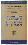 Titolo: DE L'HISTOIRE DES SCIENCES A L'HISTOIRE DE LA PENSEE. Les sciences humaines et la pensée occidentale - Volume 1. - Gusdorf Georges - Payot, Bibliothèque Scientifique - 1966