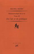 Les différents textes, écrits, conférences, articles, de Michel Henry sont rassemblés dans ces volumes sous le titre général : Phénoménologie de la vie. Ce troisième volume développe deux des conséquences essentielles de la Phénoménologie de la vie, à savoir que, comme l'intersubjectivité, la politique et l'économie ne doivent pas se penser à partir des structures sociales, mais à partir de l'immanence à soi de la vie, suivant en cela une interprétation révolutionnaire de Marx. D'autre part l'art, en particulier la peinture abstraite, ne représente rien du monde, parce qu'il ne présente que le pathos originel de l'invisible, de l'auto-affection.