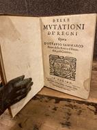 In-8° antico (14x10 cm), pp. 127 (1) bianca (16), legatura in mezza pelle ottocentesca con angoli, filetti e titolo dorati su tassello al dorso. Marca dello stampatore allegorica con motto al frontespizio, capolèttere ornati (alcuni animati), il tutto silografico. Testo stampato centrale e rubricato ai lati. Firme di appartenenza e minimi difetti (ombre di nastro adesivo) ai contropiatti e alle carte bianche, una macchiolina al margine esterno delle prime 5 pagine, lievemente rifilato in testa. Non comune edizione torinese di un'opera del nobile campano (Rocca d'Evandro, ? - 1630) che ammette la possibilità di sovvertimento del potere costituito in presenza di validi motivi. Seconda edizione che segue di un anno la princeps napoletana per i tipi di Lazaro Scoriggio. Di essa si occupò anche Croce ne "La Critica". Cfr. Piantanida: "Dichiarò Giovanni Silvestri, nella ristampa del 1825, che pur essendo retorico quest'aureo trattato nel quale l'Autore "costruisce una particolareggiata casistica dei rivolgimenti politici ricavati dalla storia, ha nello stile quell'armonica gravità che per il carattere della nostra lingua si adatta spontaneamente all'indole dei concetti"; Graesse, VI/I, 255.