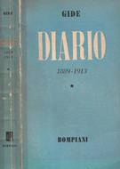 Diario di André Gide, pagine scritte dal 1889 al 1913, brossura editoriale in cartoncino semirigido segnato da un generale appesantimento dei toni, piatti riparati con nastro adesivo, profonda piega al dorso, escoriazioni e piccoli frammenti mancanti agli angoli superiori, leggera flessione di quella inferiore in prima. Fogli intatti e saldi alla cerniera, tonalità ossidate vintage, densa fioritura in cornice, bruniti i tagli. N. pag. 413.