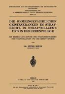 Die Gemeingefährlichen Geisteskranken im Strafrecht, im Strafvollzuge und in der Irrenpflege: Ein Beitrag zur Reform der Strafgesetzgebung des Strafvollzuges und der Irrenfürsorge