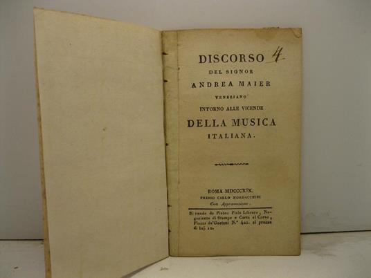 Discorso del signor Andrea Maier veneziano intorno alle vicende della musica italiana