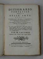Dizionario portatile delle belle arti ovvero Ristretto di ciò, che spetta all'Architettura, alla Scultura, alla Pittura, all'Intaglio, alla Poesia, ed alla Musica. Insieme Con i nomi, la data della nascita, e della morte, le più rilevanti circostanz