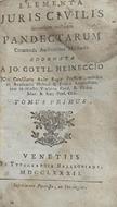 Elementa Juris Civils secundum ordinem PandectarumCommoda auditoribus Methodo Adornata, Tomus Primus