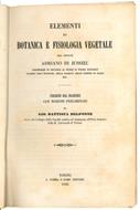 Mm. 178x113. Pp. XXXII, 750. Con numerose illustrazioni in nero nel testo. C. lievemente brunita. Rilegato in mezza pelle coevo con titolo inciso in oro al dorso e tagli spruzzati in blu. Piatti e punte lievemente abrasi. Esemplare molto ben conservato. Prima edizione italiana di quest'opera di Adriano Di Jussieu, professore di Botanica al Museo di Storia Naturale Membro dell'Istituto, della Facoltà delle Scienze di Parigi ecc.